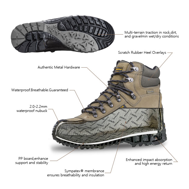 ভিতরের জুতাটি জার্মান সিমপেটেক্স ওয়াটারপ্রুফ মোজা দ্বারা আবৃত যা শ্বাস-প্রশ্বাসযোগ্য এবং জলরোধী, আপনার পা সর্বদা শুকিয়ে রাখে।