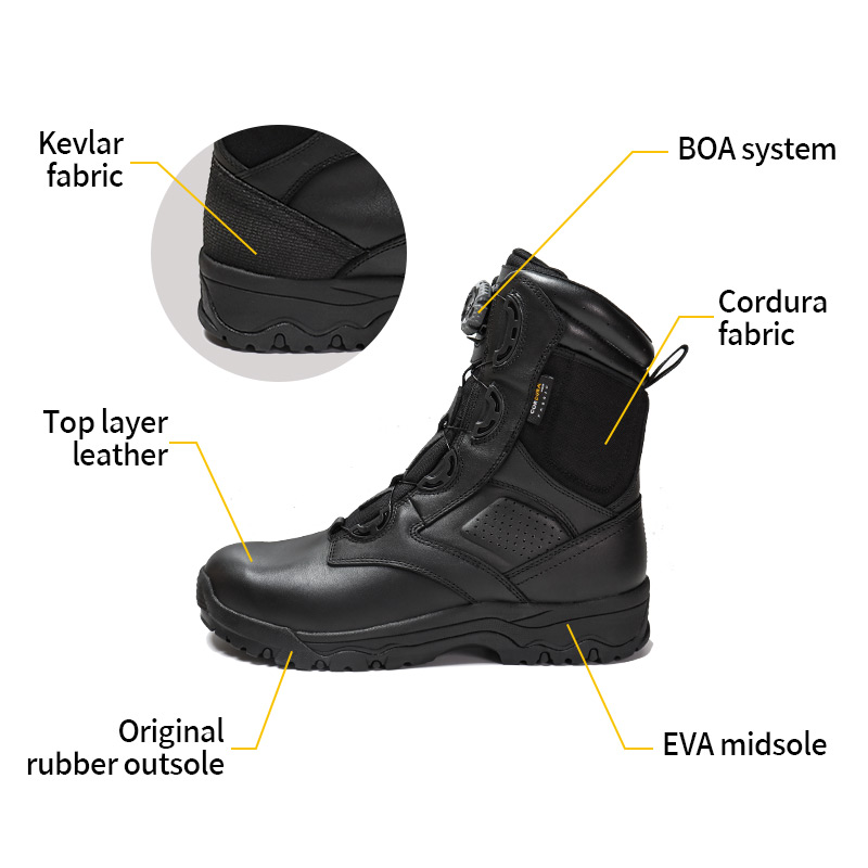 এই কুইক-অন/অফ সিস্টেম পুলিশ বুটগুলি স্টকে আছে এবং পাঠানোর জন্য প্রস্তুত, মাত্র 10 জোড়া থেকে অর্ডার শুরু হয়৷ আরও বিশদ বিবরণ বা মূল্যের অনুসন্ধানের জন্য, যেকোনো সময় নির্দ্বিধায় যোগাযোগ করুন। কাস্টমাইজেশন ন্যূনতম 800 জোড়ার অর্ডারের সাথে উপলব্ধ। এবং এই মডেলের নিম্নলিখিত সুবিধা রয়েছে: