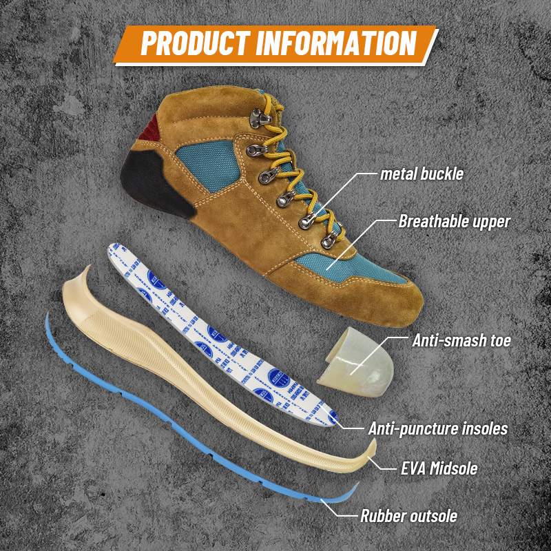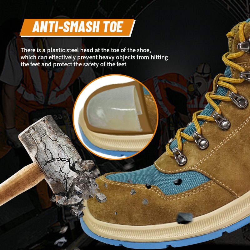 জুতার পায়ের আঙুলে একটি প্লাস্টিকের স্টিলের মাথা রয়েছে, যা কার্যকরভাবে ভারী বস্তুকে পায়ে আঘাত করা থেকে প্রতিরোধ করতে পারে এবং পায়ের নিরাপত্তা রক্ষা করতে পারে।
